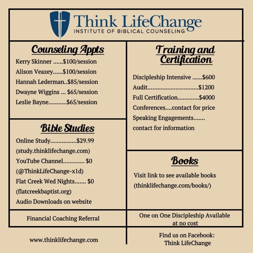 At Think LifeChange, we have one message but several avenues in which we share it. We have a lot that we offer and want to make sure that you are aware of it all. Here is a list of services all in one place. Hopefully this helps you know all that is available. Scholarships are…