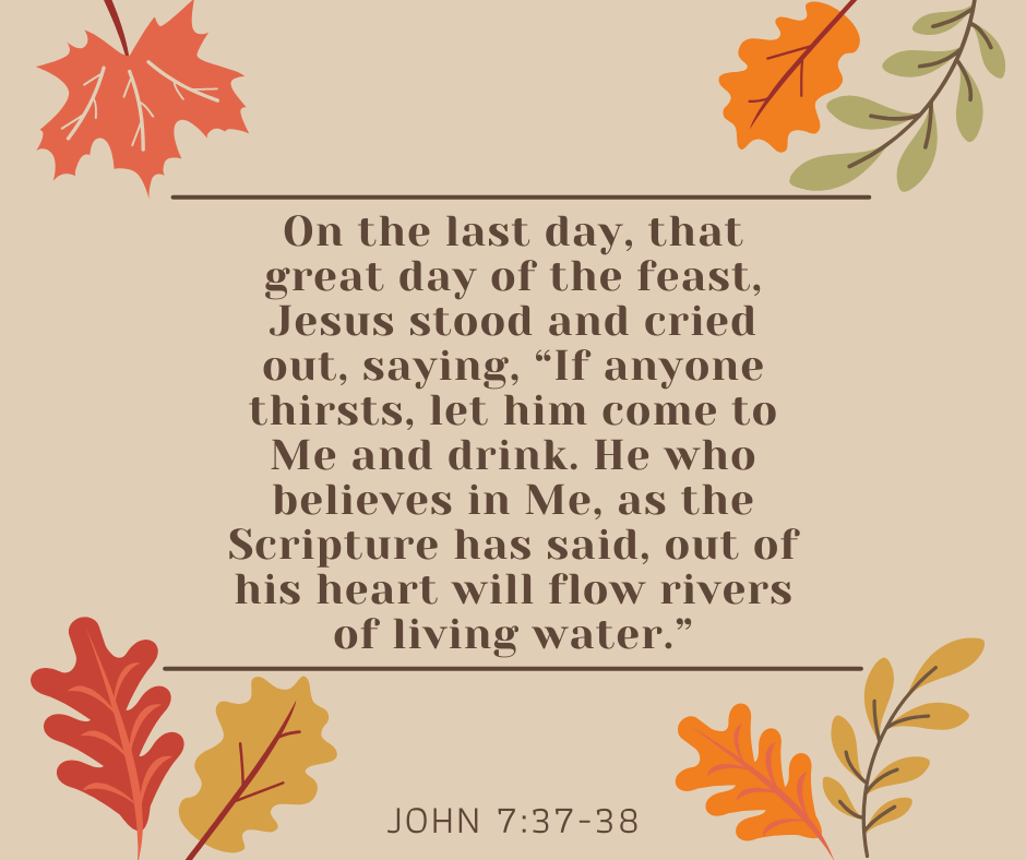 On the last day of the feast, Jesus made a statement that shocked the religious leaders. He stated that if anyone thirsts, they should come to Him for a drink. This offended the leaders. A priest would traditionally bring a golden urn of water from the pool of Siloam and pour it on the altar…