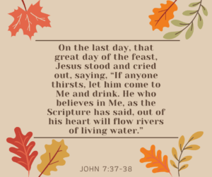 Read MoreOn the last day of the feast, Jesus made a statement that shocked the religious leaders. He stated that if anyone thirsts, they should come to Him for a drink. This offended the leaders. A priest would traditionally bring a golden urn of water from the pool of Siloam and pour it on the altar…
